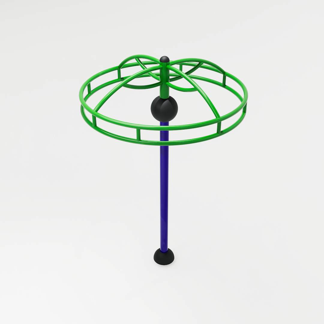 O Carrossel foi desenvolvido para proporcionar uma experiência de giro diferente dos modelos tradicionais. Com estrutura alta e apoios superiores, as crianças se penduram e giram de pé, usando o próprio corpo para impulsionar o movimento e desafiar o equilíbrio.
